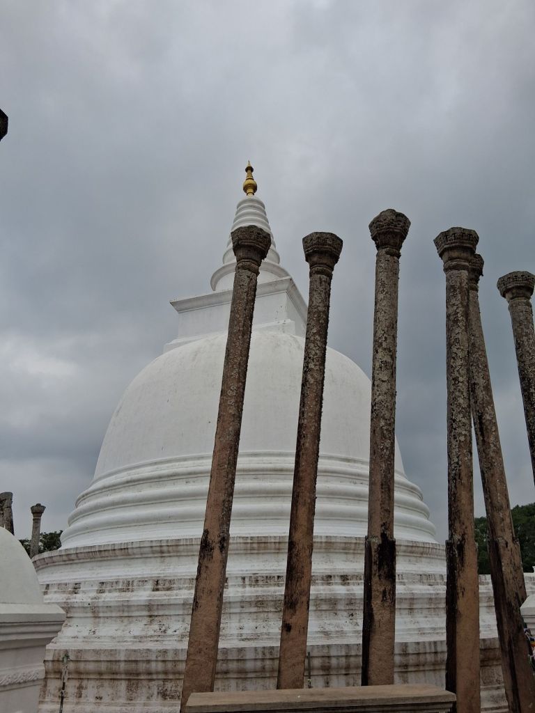 Our first stop was the Thuparama Dagoba which is the oldest in Sri Lanka and was built in the 3rd century BCE to enshrine the right collarbone of Buddha. Pictured below you can also see pillars – these would have supported the Vatadage which was a canopy over the stupa. There would have originally been 176 pillars but only 41 remain.