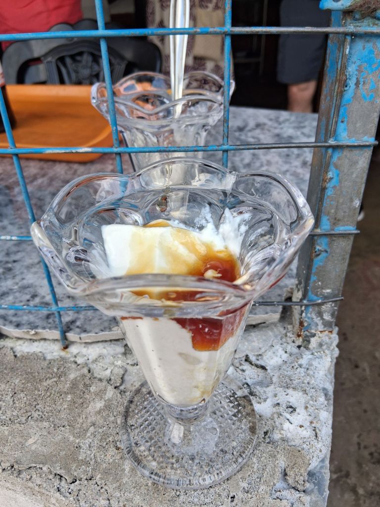 Yesterday we travelled from Trincomalee to Dambula. I have written extensively about the food, but I am also getting the strong sense that Sri Lankans are a nation of feeders. Not that this is necessarily a bad thing. On our 3 our drive we had two food stops, the first for what was described as curd with treacle (pronounced by our guide as trekle which I shall be adopting from now on). This is a set buffalo’s milk yogurt served with a treacle made from the fish tail palm tree. An excellent breakfast/mid morning snack. In case we were weakening, about an hour later, I had an early lunch of kottu (which is swiftly becoming my snack of choice)