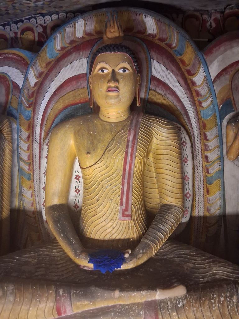 This area has two UNESCO World Heritage Sites (the Dambulla caves and Sigriya) and three national parks. We were starting in the Dambulla Cave Temple. These date back to the 2nd century BC and were built by Valagamba of Anuradhapura to thank the people and the monks after his 14 years in hiding amongst them before reclaiming his throne. Some of the artwork dates back to these times, all the way up to 11th century. These would have originally been home to some 80 monks, but today there are 5 caves the largest of which includes the largest wall mural of Buddha in Sri Lanka. As a whole, this is the largest and best-preserved cave temple complex in Sri Lanka. I should probably start by saying this was my first climb of this holiday, call it a test run for tomorrow, of 160m up around 40 stairs and quite a lot of uphilling as the caves are (as always) at the top of a hill. I was fine, a bit glowy (readers of my blog know that ladies never sweat, we merely glow) but no crying meltdowns. Huzzah.
