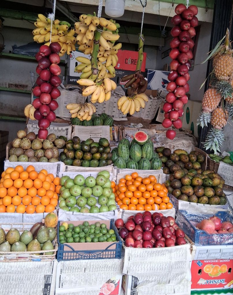 Kandy is a lovely city as it has, at its centre, a lake and 38 buildings which are UNESCO World Heritage sites. After a quick check in we were dropped off in the centre of town (it is not big) for a walking tour and general overview. We will have more time to explore and therefore expect more detail, snippets pf history and photos tomorrow. We started at the western end at the central market. I shall absolutely be returning here as well tomorrow as I feel the need to do a little light shopping, and there seemed to be lots of fabric and tourist tat options. Therefore, I mainly focussed today on the food available: