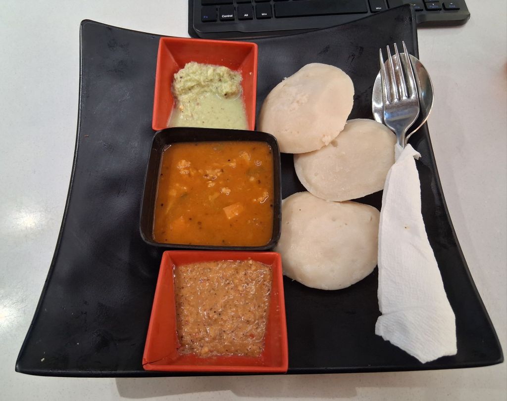In honour of Tom, for my last meal, I had idli and sambols (I shall be on nothing but dry bread and carrot stick when I get home) and now I am sitting looking at my plane waiting to board.