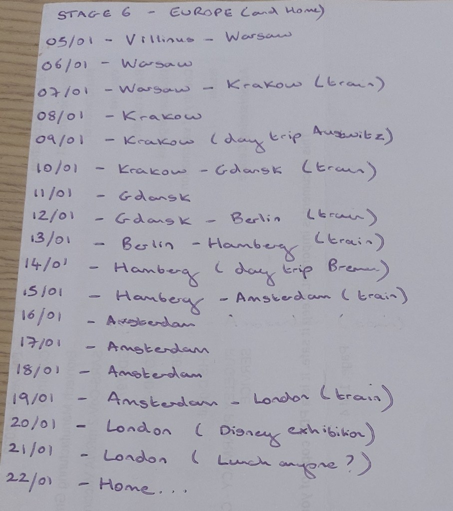 Stage 6 (Final stage) – Europe (and home)